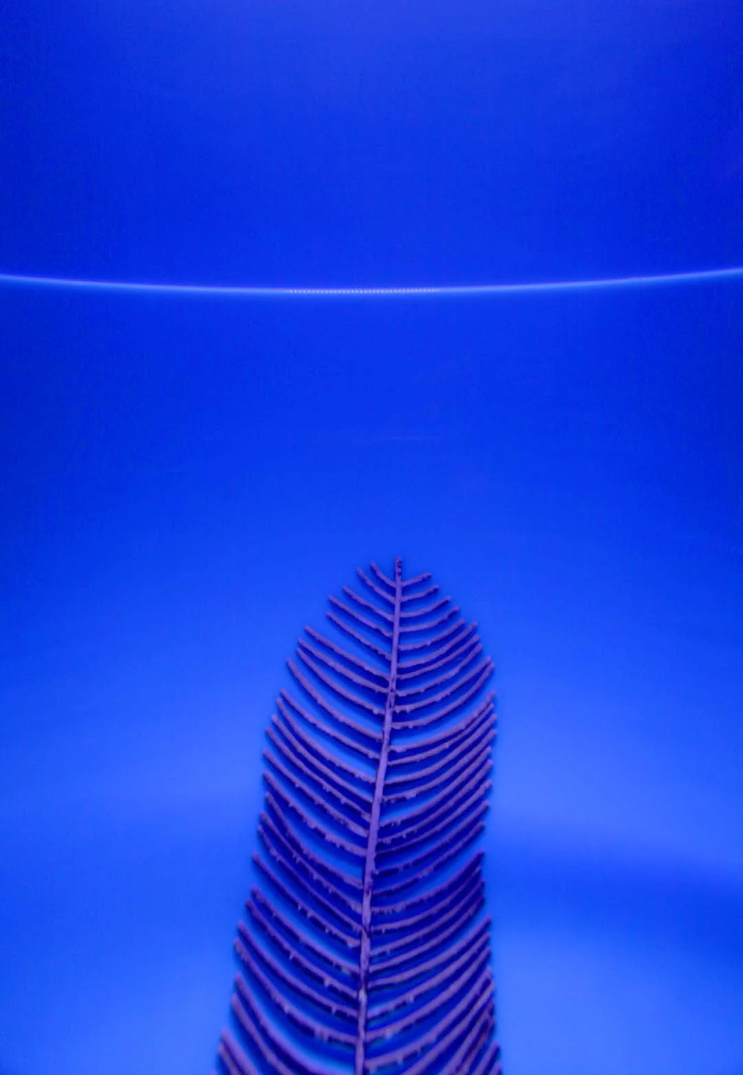 The deep blues were particularly hypnotic in this frame. A coral reaching upward into an impossibly saturated blue. A single thin white line crossing the frame above it — so fine, so precise, it reads almost like a horizon, or a threshold. I love the restraint of it.